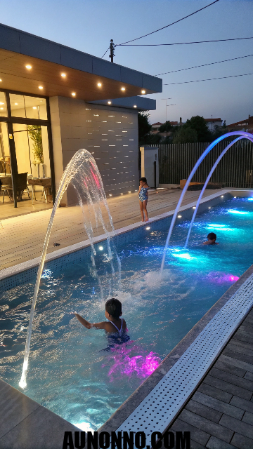 Fountain features range from simple bubblers on tanning ledges to elaborate centerpiece displays. Bubblers create gentle burbling water that provides soothing sounds and slight cooling effects. More dramatic fountains shoot vertical jets or create coordinated water displays that can be programmed with LED lighting for nighttime entertainment.​