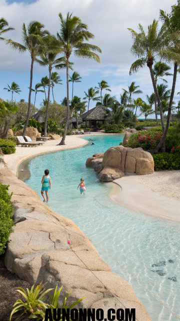 Beach entry pools, also called zero-entry pools, feature gradual sloping entries that mimic walking into the ocean. The gentle grade creates a seamless transition from deck to water without traditional steps. This design provides universal accessibility for young children, elderly family members, and individuals with mobility challenges.​