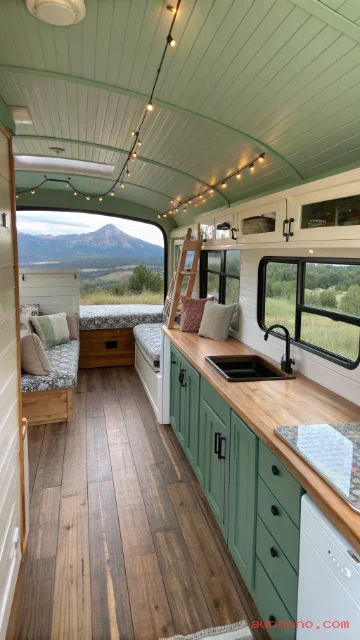 Most skoolie conversions feature wood-clad interiors that completely transform the original bus aesthetic. The adventure of traveling in a converted bus appeals to nomadic spirits worldwide.