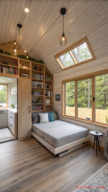 Murphy beds revolutionize tiny house floor plans by reclaiming living space during daytime hours. A wall-mounted bed that folds up instantly transforms a bedroom into a spacious living room or home office.