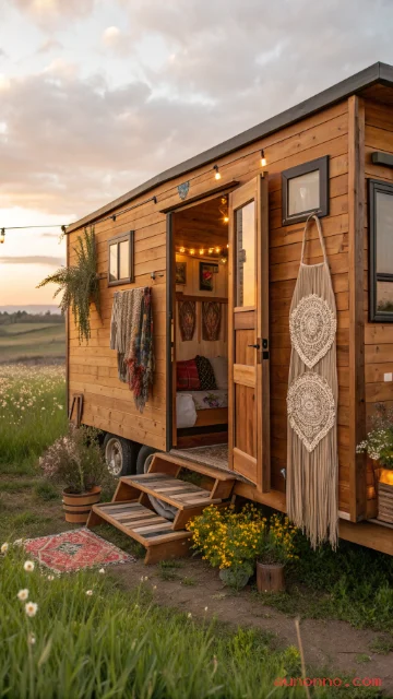 Mobile tiny houses offer freedom and flexibility for those who love to travel. The bohemian style brings warmth, color, and personality to these compact rolling homes through layered textiles and eclectic decor.
