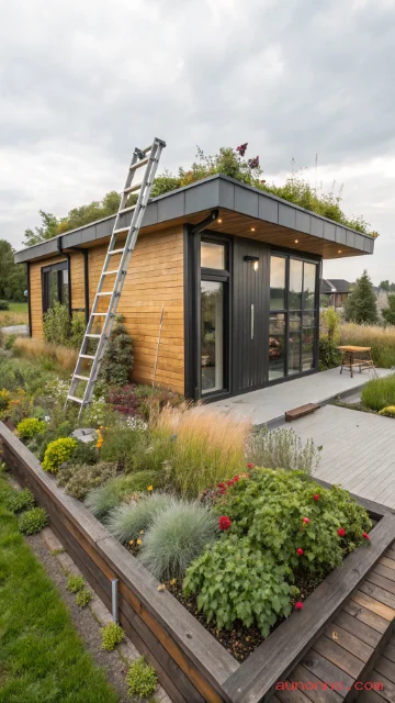 Green roofs transform tiny houses into living ecosystems. Planted roof systems provide insulation, manage stormwater, and create additional outdoor living or growing space.