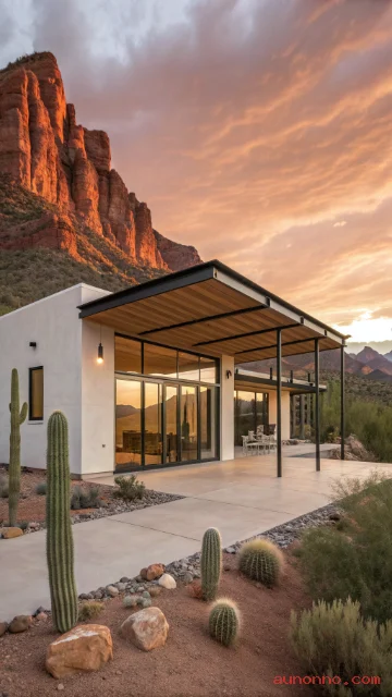 Flat roofs accommodate solar panels and rainwater collection systems for sustainable desert living. Courtyards and shaded outdoor living areas extend the usable space significantly.