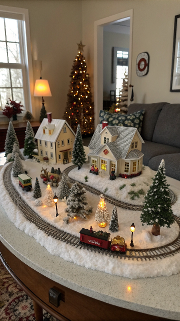 Enhance the display with faux snow, twinkling lights, or even a small train set to bring the village to life. This interactive decor can be a fun project for the whole family, allowing everyone to contribute their ideas and creativity. Make sure to place the village in a visible area where it can be admired by guests.