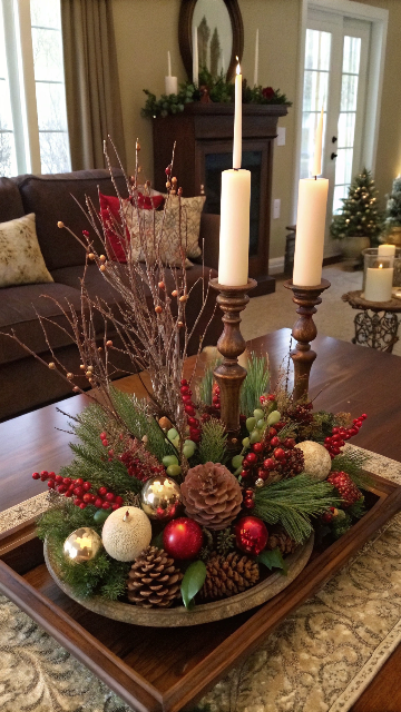 Creating a stunning centerpiece for your coffee table or dining table can enhance your holiday decor. Use a combination of seasonal elements like candles, ornaments, and greenery to create a visually appealing arrangement. Consider using a decorative bowl or tray to hold your centerpiece items together.