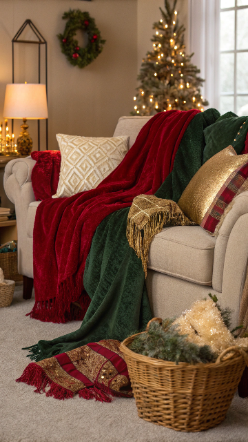 Incorporating cozy blankets and throws into your living room decor not only adds warmth but also enhances the festive atmosphere. Choose blankets in rich, seasonal colors like deep red, green, or gold, and drape them over your sofa or chairs. This creates an inviting space for family and friends to gather.