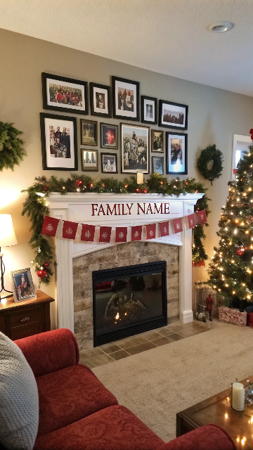 Incorporating personalized family decor can make your living room feel even more special during the holidays. Consider creating a family photo display with holiday-themed frames or a custom banner that showcases your family name. This adds a personal touch and makes your space feel warm and inviting.