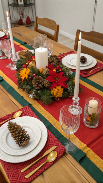 Transform your coffee table or dining table with a festive seasonal table setting. Use a table runner in holiday colors and layer it with decorative plates, napkins, and centerpieces. Incorporate elements like pinecones, candles, or seasonal flowers to create a cohesive look.