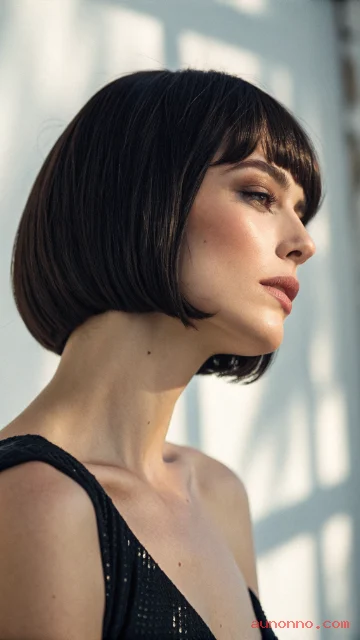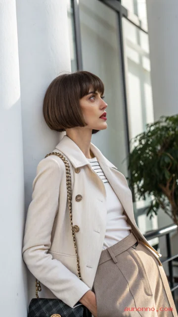 Ask your stylist for a chin-length cut and tapered ends to keep it fresh. Apply a smoothing serum for shine and frizz control. It fits every season and complements any outfit.