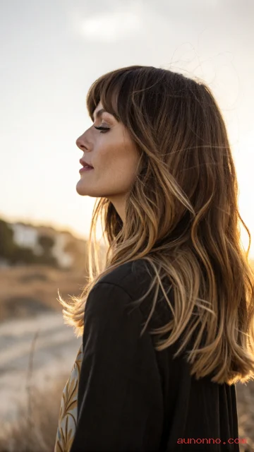 It’s perfect for medium to long hair with volume. Blow-dry with a brush to shape layers outward. This method shows airy contours.