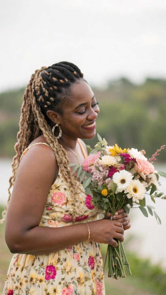 For a softer, more romantic look, try two braids with curly ends. This style combines the structure of braids with the bounce of curls. It’s perfect for weddings or formal events.