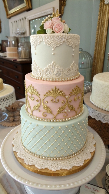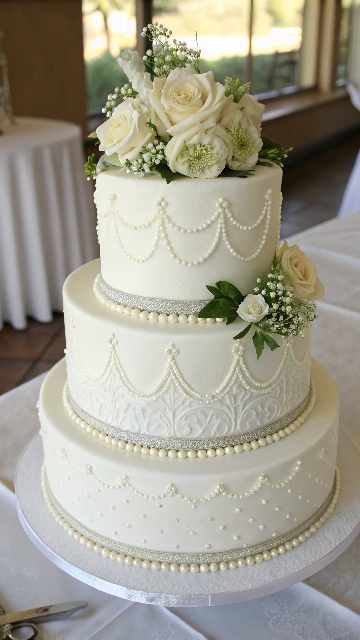 This cake often features pearl accents or edible gold leaf for a luxurious touch. The intricate and elegant look makes it a favorite for couples who want a cake that’s both timeless and sophisticated. It’s a perfect match for those who appreciate classic beauty.