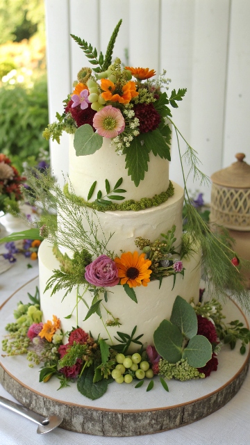 This cake often features edible flowers, herbs, or foliage for a natural touch. The organic and romantic look makes it a favorite for couples who want a cake that feels like a piece of the garden. It’s a perfect match for those who love the beauty of nature.