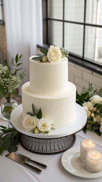 Pair this cake with sleek table settings and monochrome decor for a cohesive look. The minimalist design is both modern and timeless. It’s a great way to keep the focus on the beauty of simplicity.