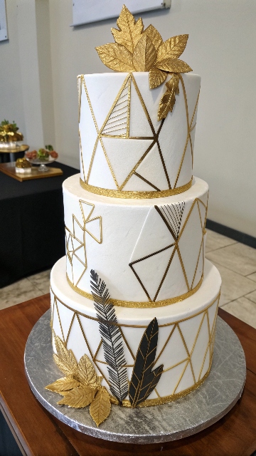 This cake often features gold or silver details for a dazzling effect. The structured and elegant look makes it a favorite for couples who want a cake that’s both opulent and timeless. It’s a perfect match for those who appreciate Art Deco style.