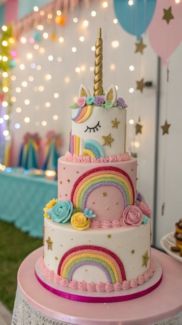 Pair this cake with colorful decor or fairy lights for a cohesive look. The whimsical unicorn design is both playful and enchanting. It’s a great way to add a touch of magic to your celebration.