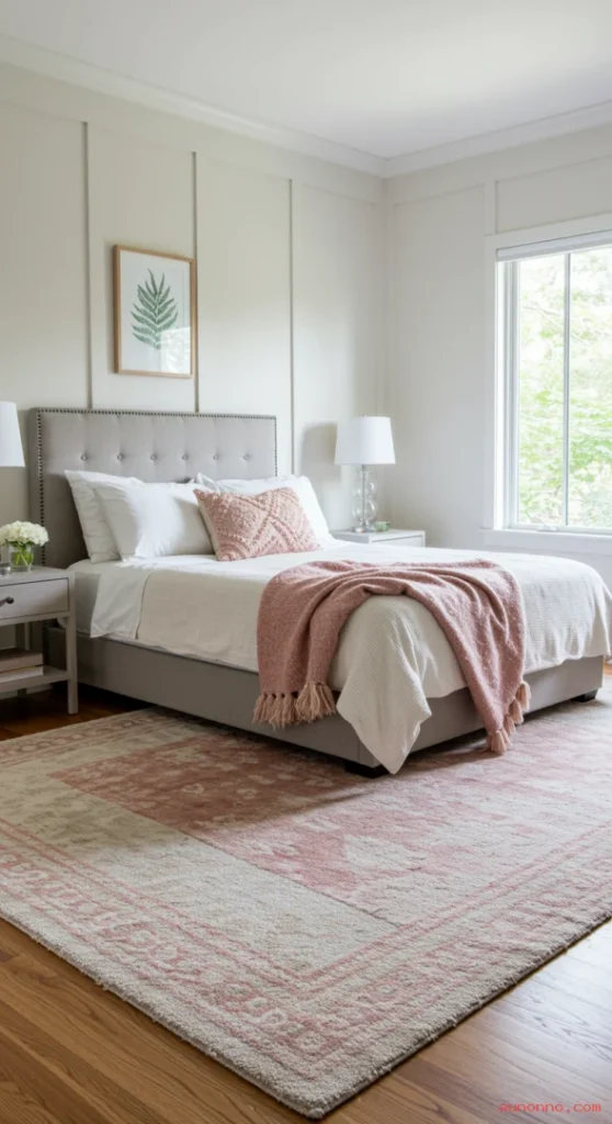 Choose rugs with simple patterns to keep the look calm. A low-pile rug makes layering easier. This also helps the room feel cozy, not heavy.