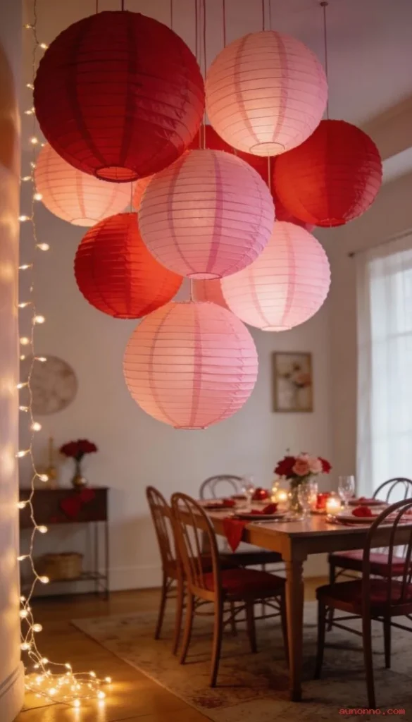 Paper lanterns can look magical in the right setup. Use heart-shaped lanterns or round lanterns in red and pink. Hang them at different heights for movement.