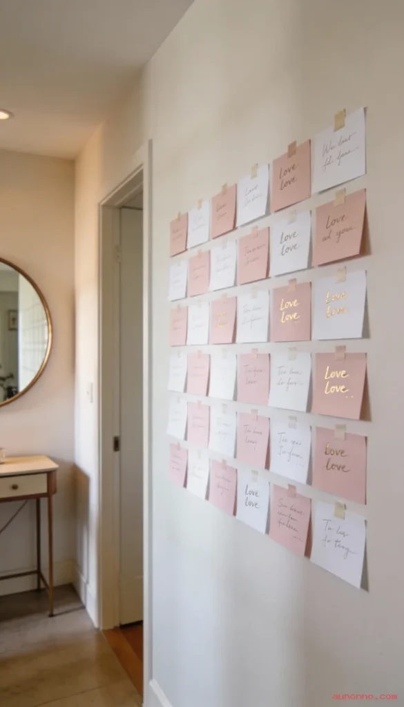 A love notes display adds meaning to your Valentines Day decor ideas. You can write short notes, memories, or sweet compliments on small cards. This turns decor into a personal experience.