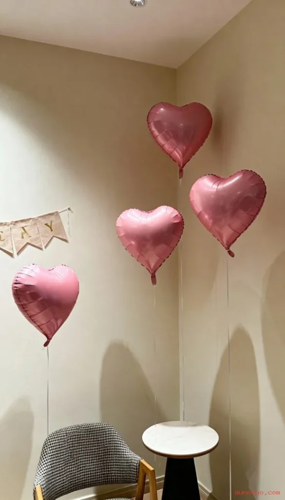 Heart balloons can look stylish if you keep them simple. Choose one color and one finish, like matte pink. Avoid mixing too many shades to prevent a party-store look.