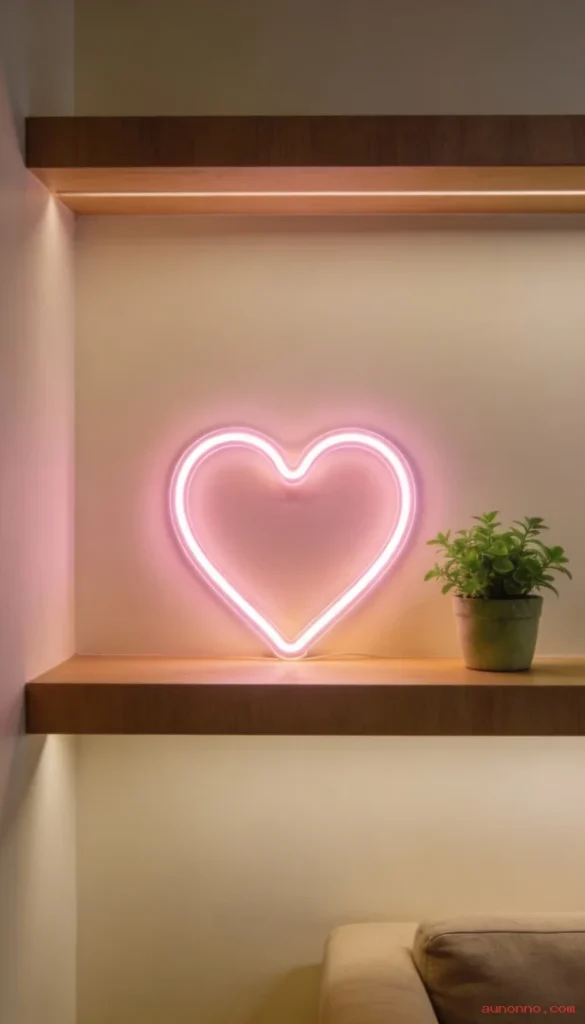 A heart light creates a strong focal point. Choose a simple heart LED or neon-style sign. Place it on a shelf or mount it on a wall.