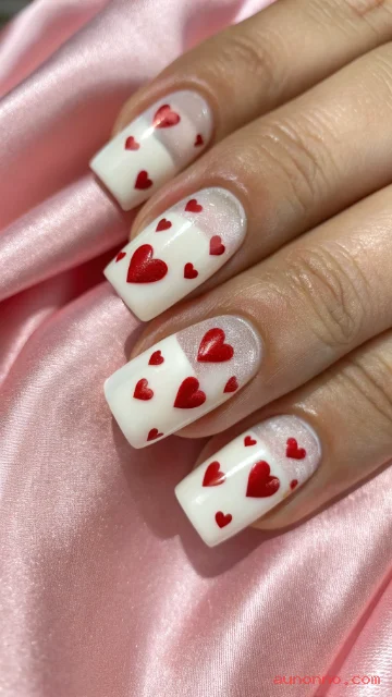 Tiny patterns are trending this year, and micro hearts are leading the pack. This design involves painting a sheer, milky base coat over the entire nail first. Then, you place one or two extremely small hearts on each nail using black or red polish.