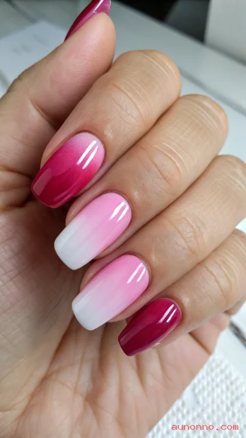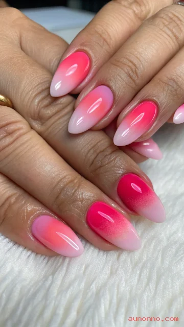 Aura nails feature a soft, blooming circle of color in the center of the nail. Use a sponge or an airbrush tool to diffuse a bright pink or red into a paler base. This creates a glowing, radiating effect that looks like an energy field.