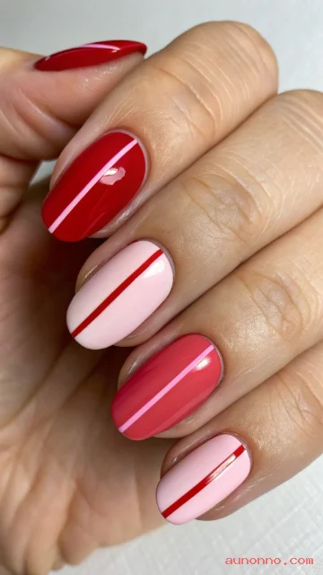 You can add tiny red text phrases like “BE MINE” or “XOXO” if you have steady hands. If not, the colors alone convey the sweet theme perfectly. It is a playful choice for a casual date or a party.