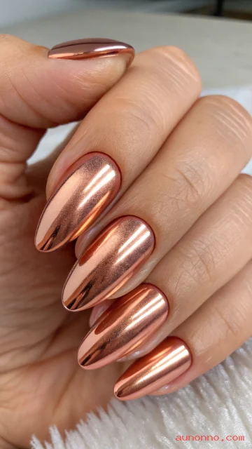 Chrome powder creates a mirror-like finish that is futuristic and sleek. Rose gold chrome is the perfect metal tone for Valentine’s Day. It combines the warmth of copper with the romance of pink in a high-shine package.