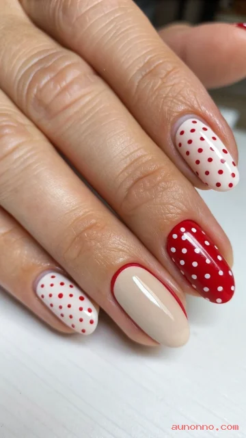 Sometimes less is truly more when it comes to nail art. A single dot at the base of each nail is clean and modern. Use a red dot on a nude nail, or a white dot on a red nail.
