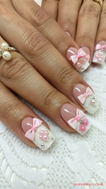 You can paint the bows freehand or use 3D nail charms for texture. A 3D bow adds a cute, tactile element that is very popular right now. Place the bow at the cuticle or the tip of the nail.