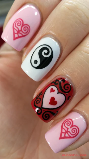 Update the classic yin yang symbol by curving the line to create a heart shape. Use contrasting colors like pink and red, or black and white. It symbolizes balance and connection, which is a great message for love.