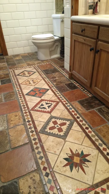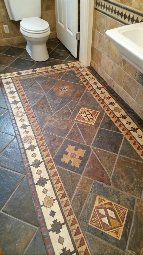 Floor tiles in western bathrooms should complement the rustic theme while providing durability. Subway tiles with a rustic glaze or large-format tiles in natural stone like slate or travertine work well. You can also opt for patterned tiles with southwestern motifs like geometric shapes or southwestern borders to enhance the theme.
