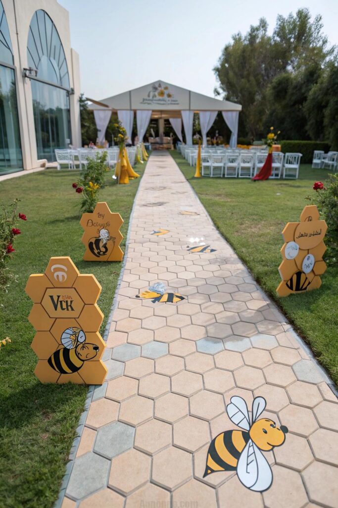 Create a pathway leading to the venue using honeycomb-shaped cutouts or decals. Place them on the ground or hang them from above. Add small bee or Pooh Bear cutouts to guide guests to the main area.