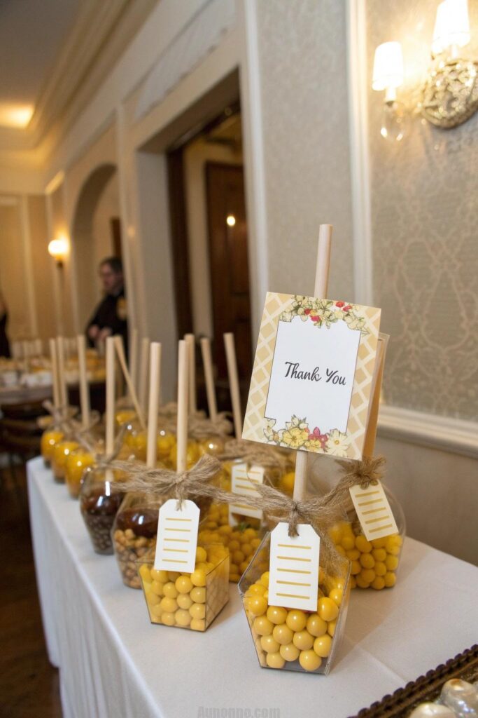 Set up a table with honey pot-shaped favors for guests to take home. Fill the pots with honey, candies, or small trinkets. Add a tag that says “Thanks for Buzzing By!” to make them extra special.