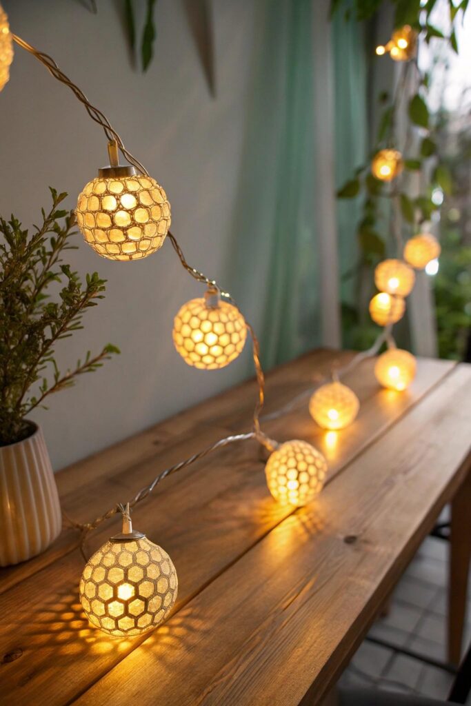 Use honeycomb-shaped string lights or lanterns to add a warm glow to the venue. Hang them above tables, along walls, or around the entrance. This lighting creates a cozy and magical atmosphere.