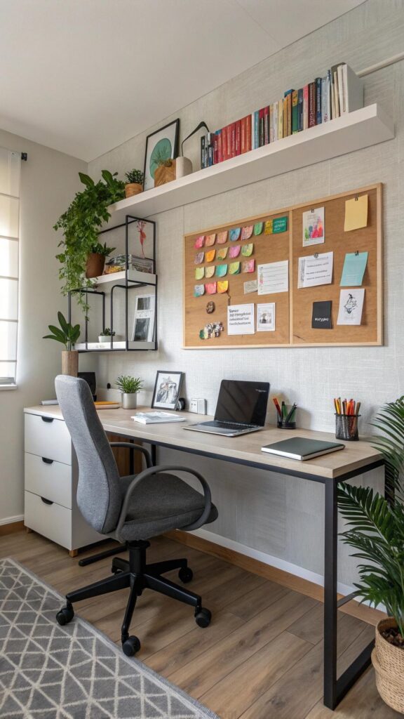 Add a charging station for your devices. Use LED lighting for a cool, techy vibe. A whiteboard or corkboard can help you stay organized.