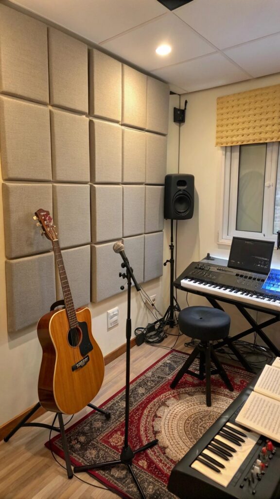 Design a music room with your instruments, a sound system, and comfortable seating. Add acoustic panels to improve sound quality and reduce noise. This space is perfect for practicing or jamming with friends.