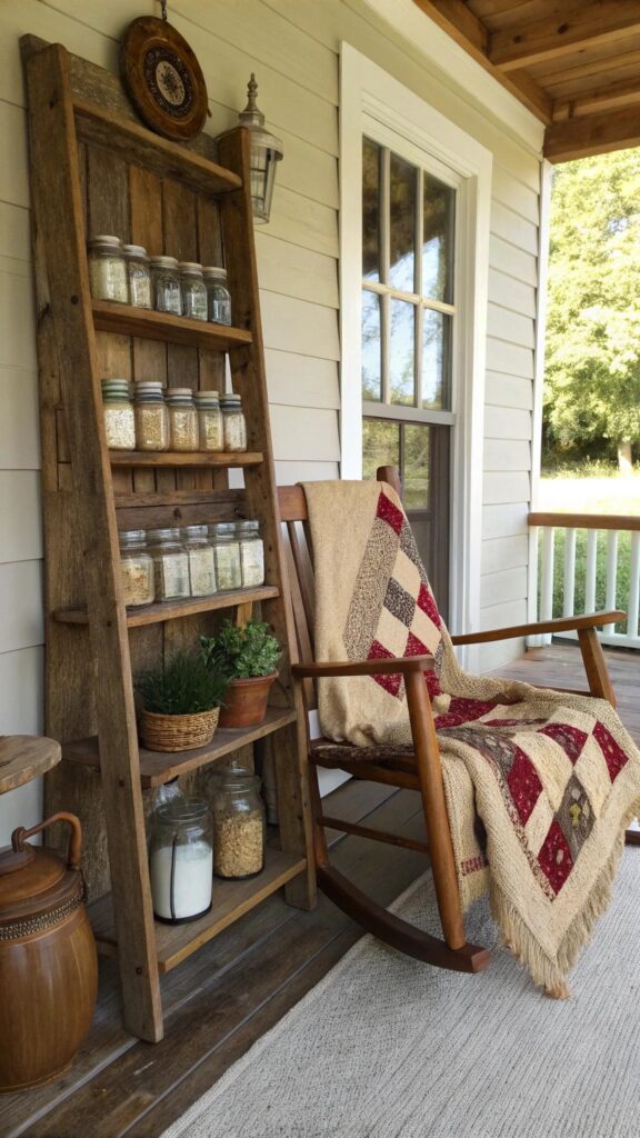 Add a rocking chair or bench for extra seating. Use lanterns or candles for soft lighting. A quilt or throw blanket can add a touch of comfort.