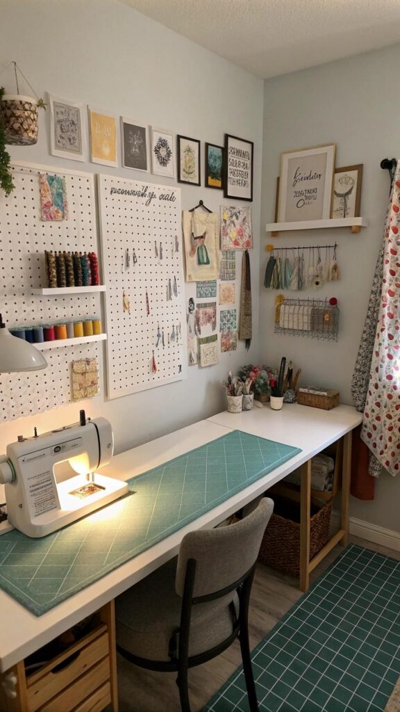 Create a sewing room with a large cutting table, sewing machine, and storage for fabrics and patterns. Use pegboards to keep tools and supplies within reach. This space will make sewing projects more enjoyable.