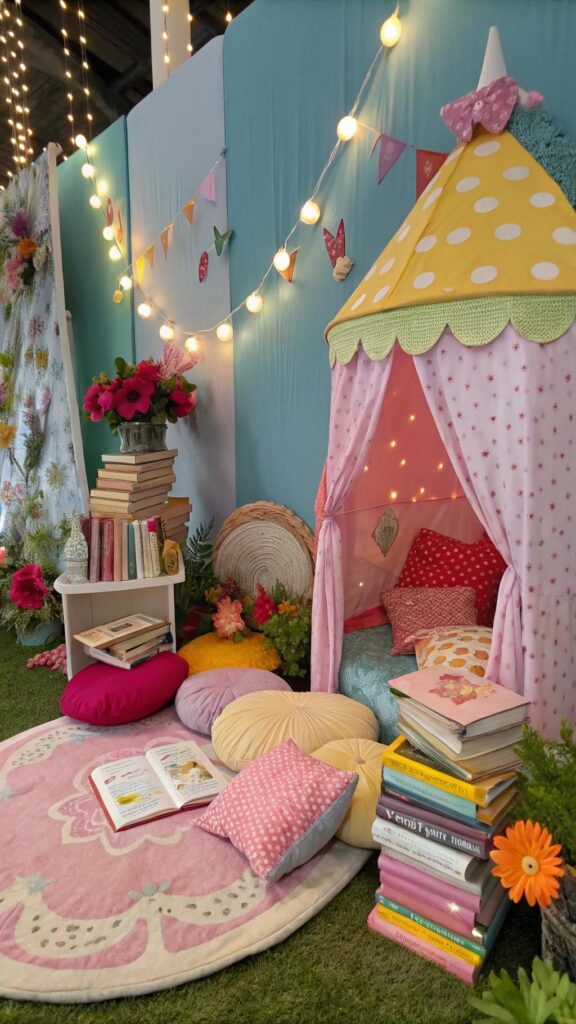Design a whimsical wonderland with bright colors, quirky decor, and playful patterns. Use fairy lights and fun accessories for a magical touch. This space is perfect for letting your imagination run wild.