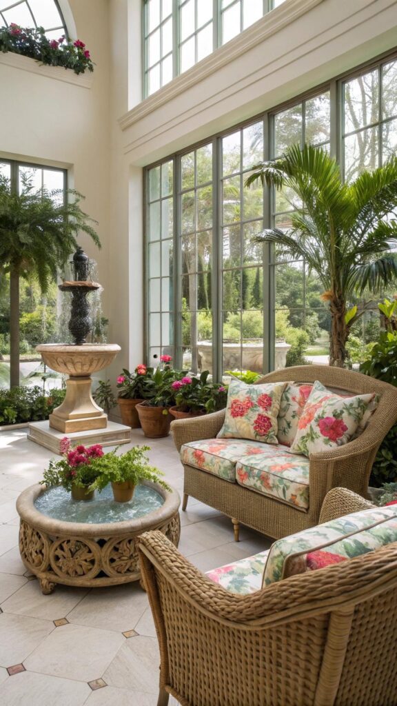 Add potted plants and fresh flowers for a natural touch. Use light, airy fabrics for curtains and cushions. A small fountain or bird feeder can enhance the outdoor feel.