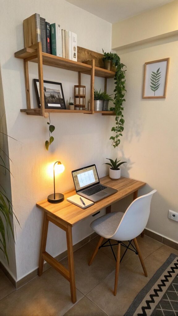 Keep the area organized with small containers or drawers. Use light colors to make the space feel larger. A compact office is practical and efficient.
