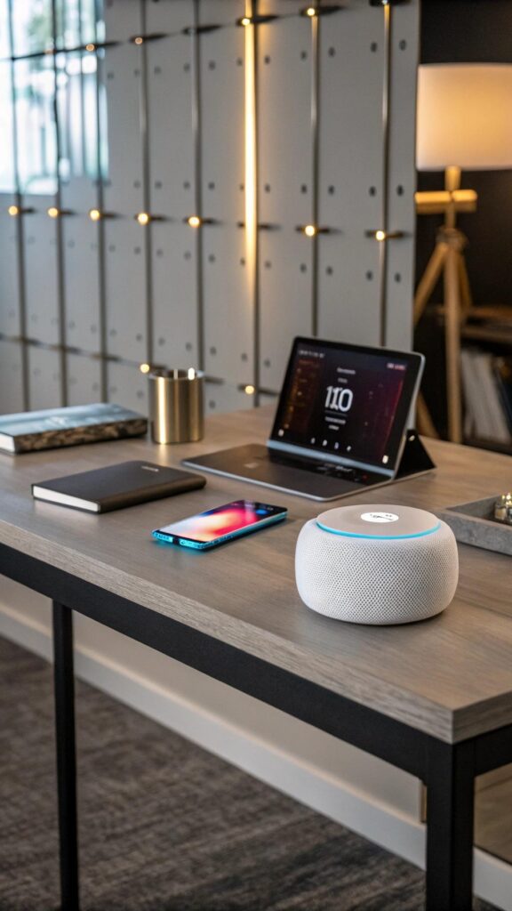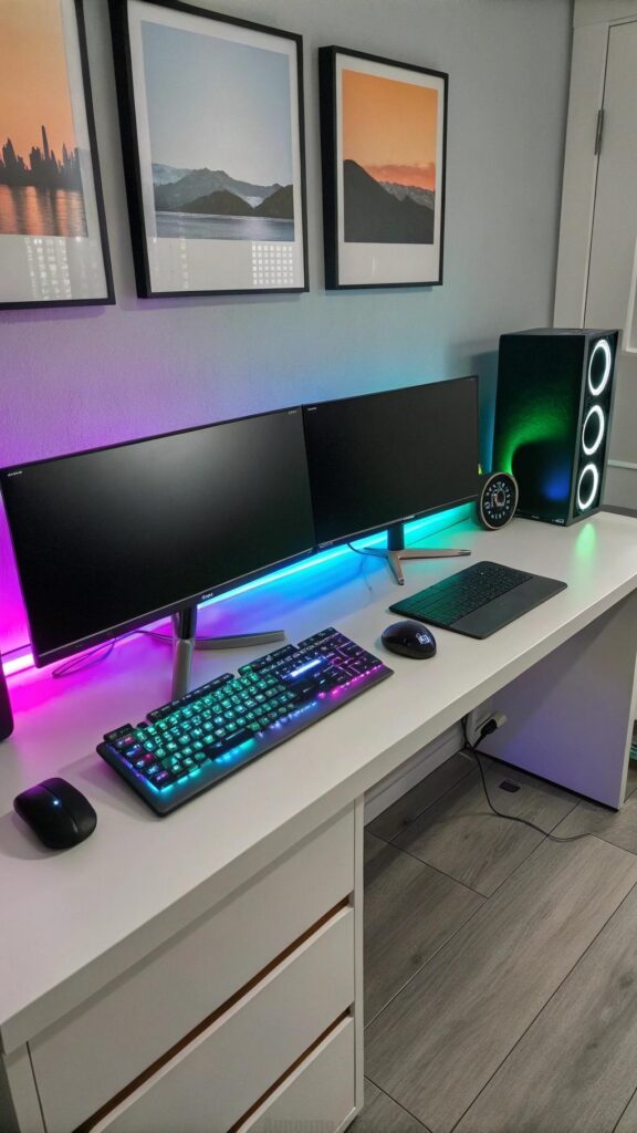 Keep cables organized with cable management solutions. Add RGB lighting for a futuristic touch. A high-tech office makes work more efficient and enjoyable.