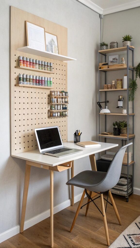 A compact work from home office is ideal for small spaces. Use a foldable desk or a wall-mounted table. Pair it with a slim chair and vertical storage solutions like shelves or pegboards.