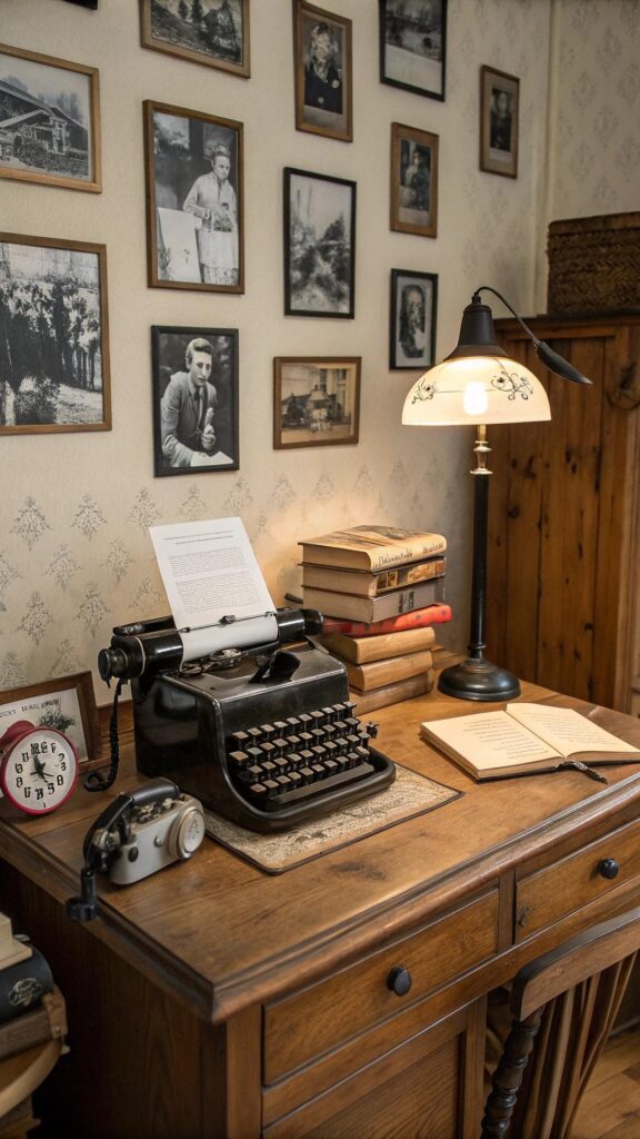 Add old books, a rotary phone, or a record player for decor. Use warm lighting with a vintage-style lamp. A vintage office feels timeless and full of character.